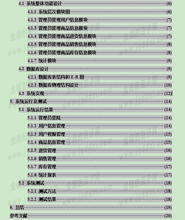本系统是采用J2EE开发的一个基于B/S架构的Web项目,运用SSH开源框架进行逻辑功能的整合,MySQL作为数据库存储载体,编程思想采用MVC设计模式,使系统模块合理结构清晰。本系统的主要功能包括供应商管理、客户管理、商品管理、统计报表,其中商品管理分为商品信息管理、进货管理、销售管理、库存管理,报表统计可以按日查询和按月查询资金的出纳情况,整个系统逻辑清晰合理,开发完成后系统实用性能良好
